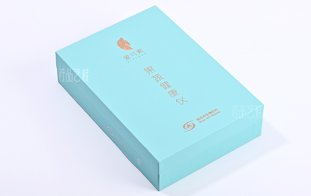 如:与爱可索(果蔬健康检测仪品牌)从设计到印刷整体完成的生物芯片产品包装盒案例: