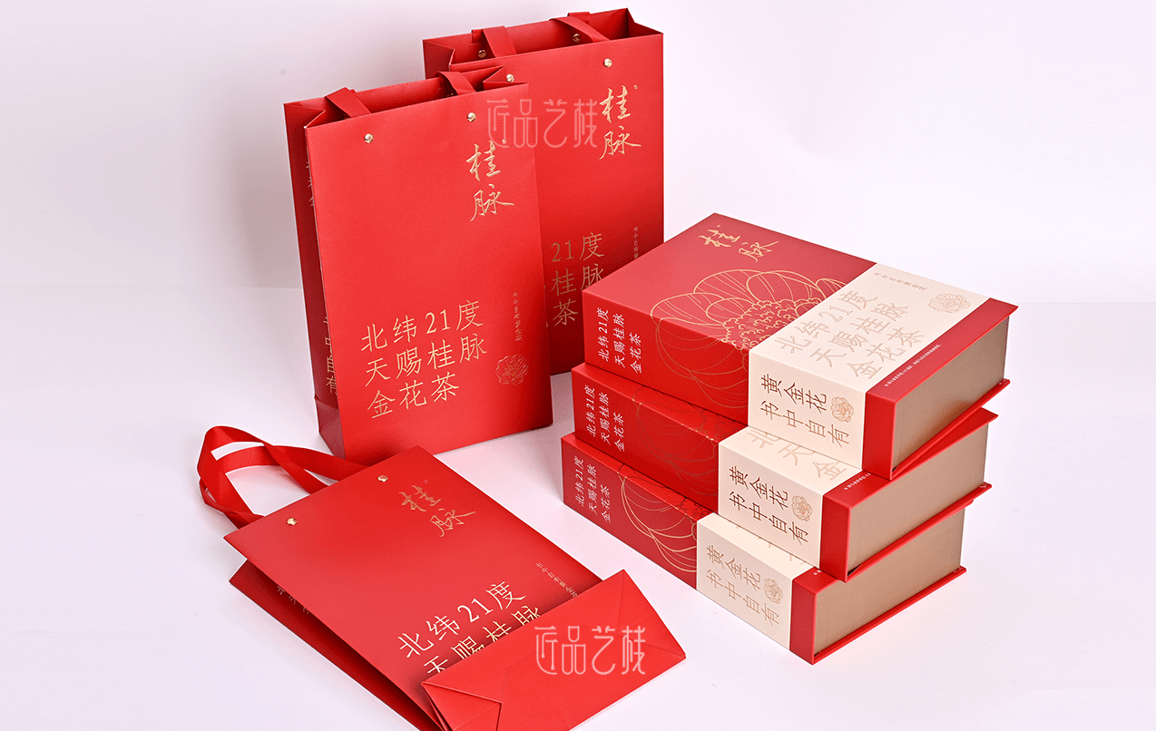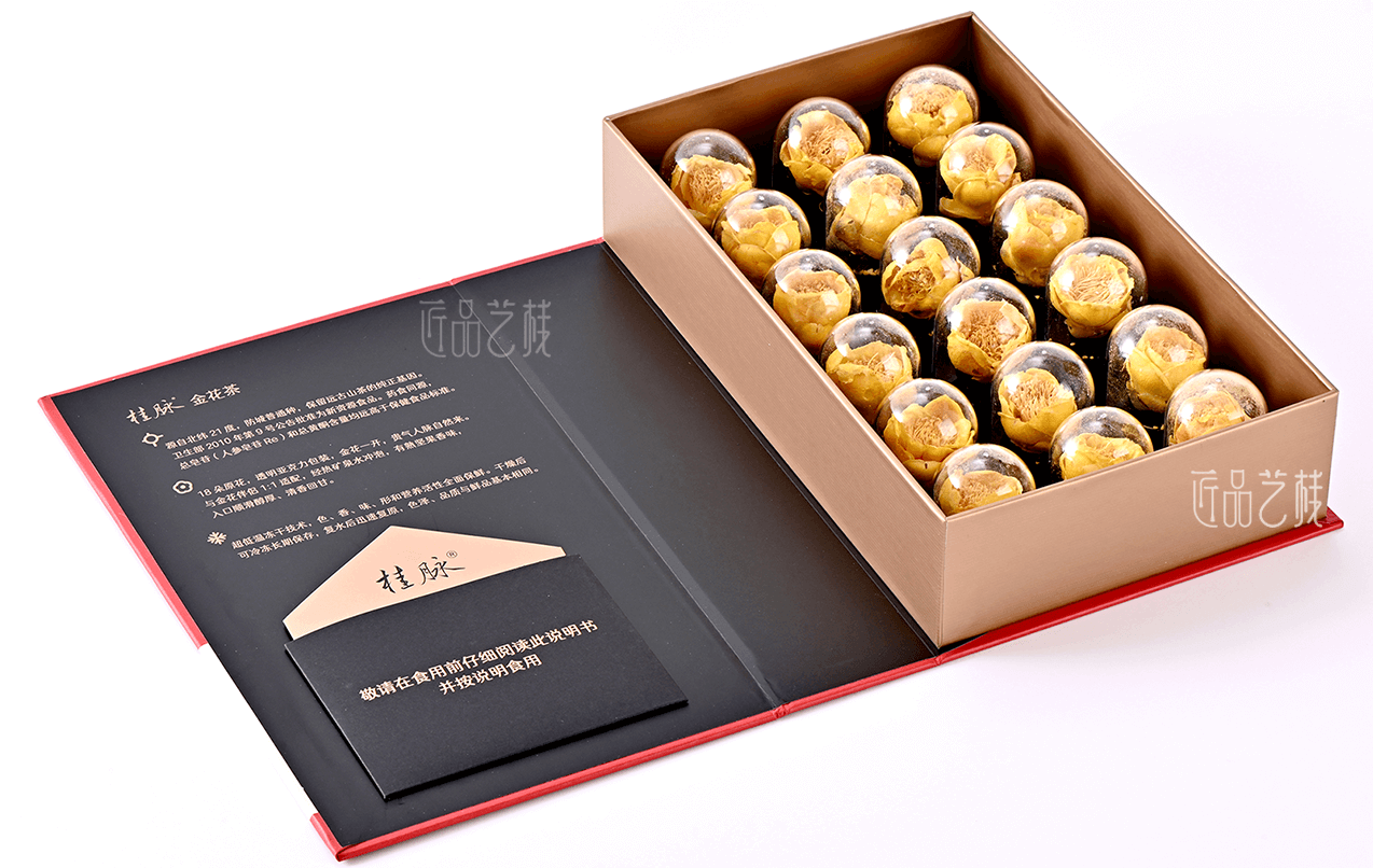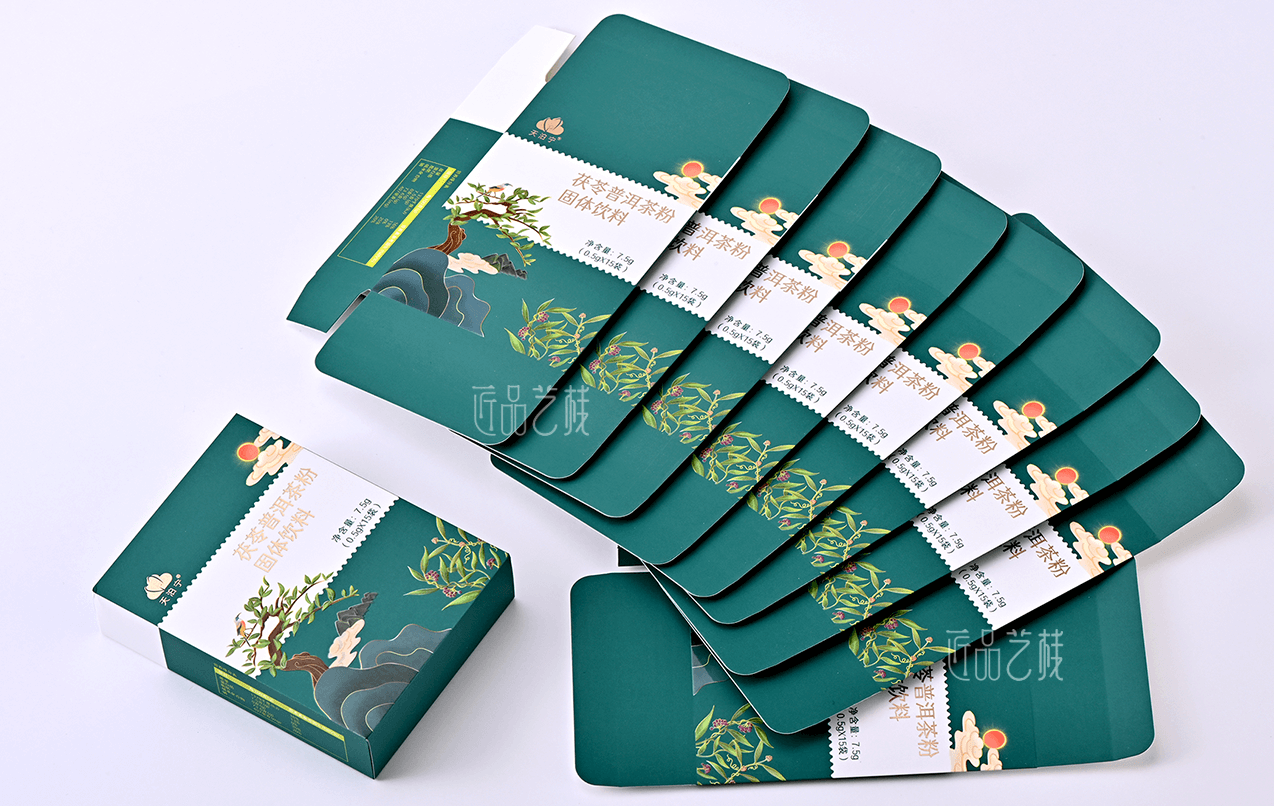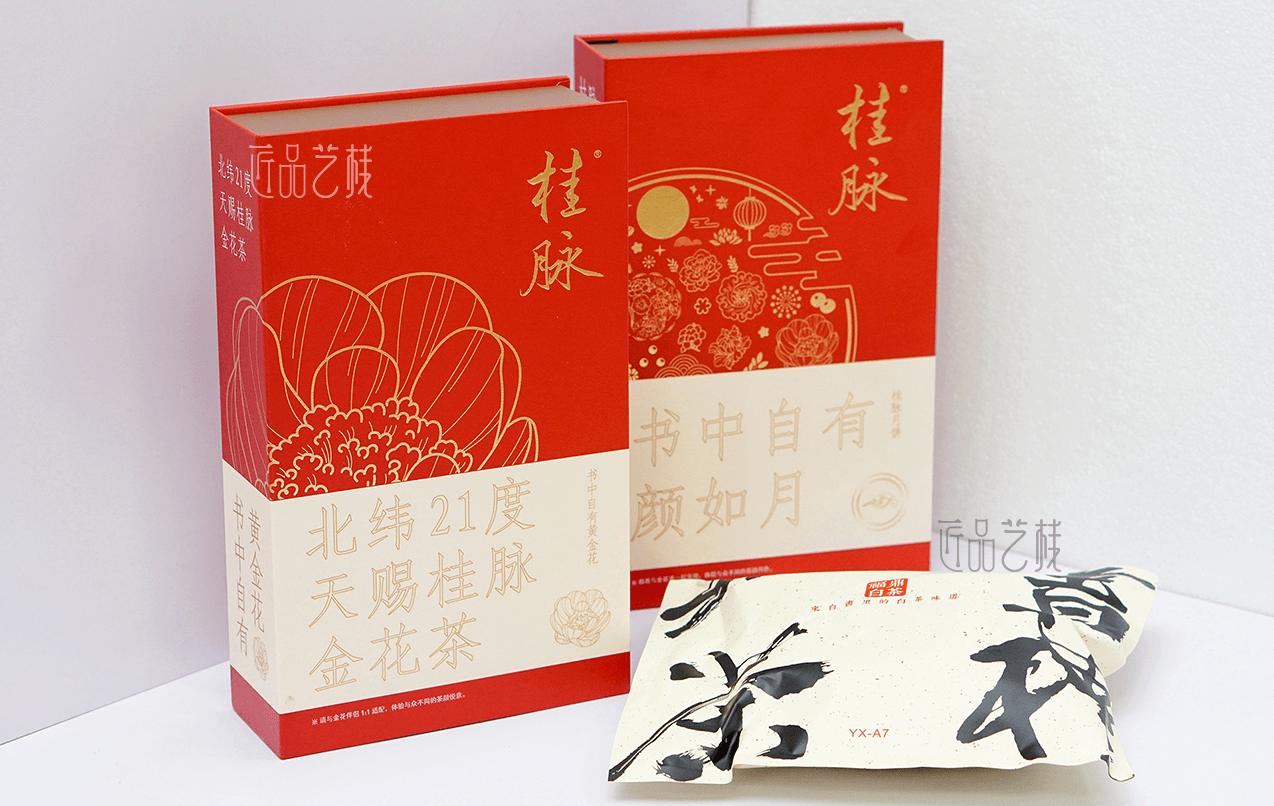 如:与桂脉金花茶(秋叶大叔直播间力推品牌)从设计到印刷整体完成的健康茶饮产品包装盒案例: