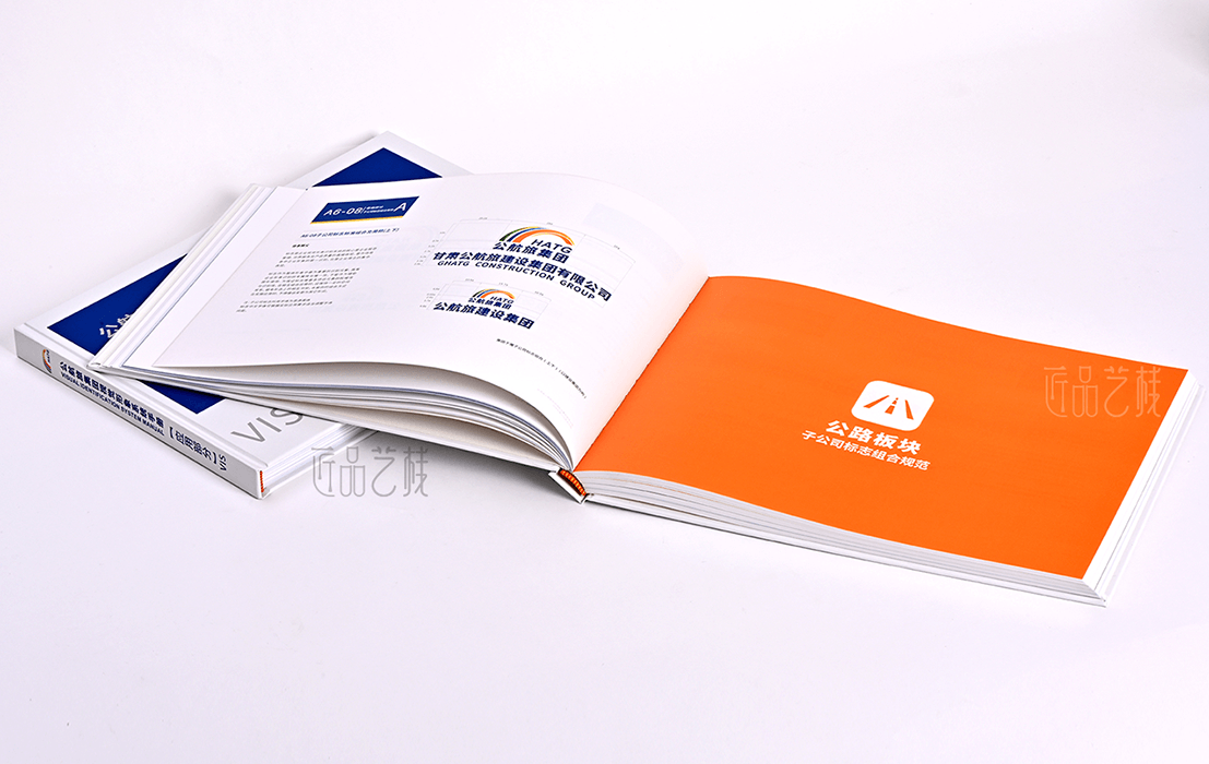 VI手册的方脊精装方式,每一页都透露着品牌的严谨与精致,